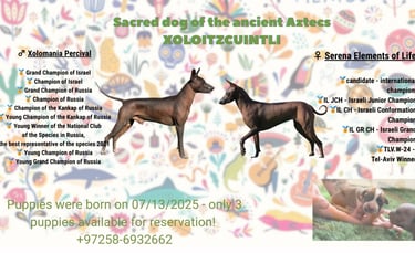 More than twenty years ago, while I was a student, I first learned about this amazing breed of dogs. It happened when I was studying ancient religions at the university. I was struck by the fact that the brutal cultures of the Incas and Aztecs treated dogs with great respect and reverence, despite their cruelty. The name of the breed, Xoloitzcuintli, reflects this attitude, consisting of two Aztec words: Xolotl, meaning the god of lightning and death, and itzcuintli, meaning "dog." Since then, I began diligently seeking information about these unusual creatures, gathering it piece by piece from various sources.